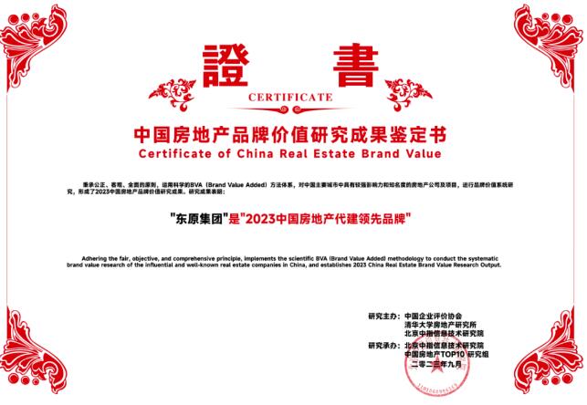 2023年9月14日,由中國企業(yè)評價協(xié)會、清華大學房地產(chǎn)研究所、北京中指信息技術研究院主辦,北京中指信息技術研究院中國房地產(chǎn)TOP10研究組承辦的“2023中國房地產(chǎn)品牌價值研究成果發(fā)布會暨第二十屆中國房地產(chǎn)品牌發(fā)展論壇”在北京隆重召開。…