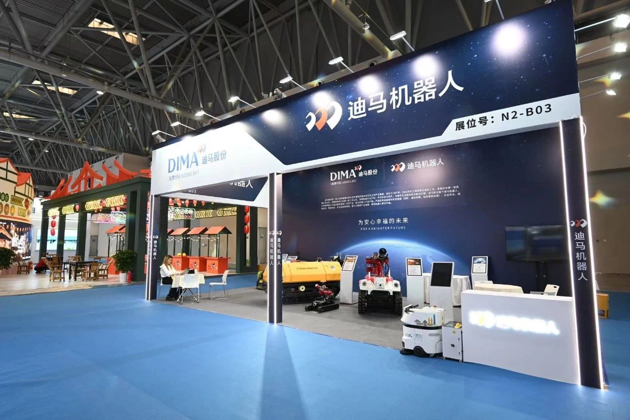 2021年10月12日,迪馬工業(yè)攜超大型多級擴展智能指揮車、智能消防機器人亮相第十九屆中國國際消防設備技術交流展覽會?!?/p>